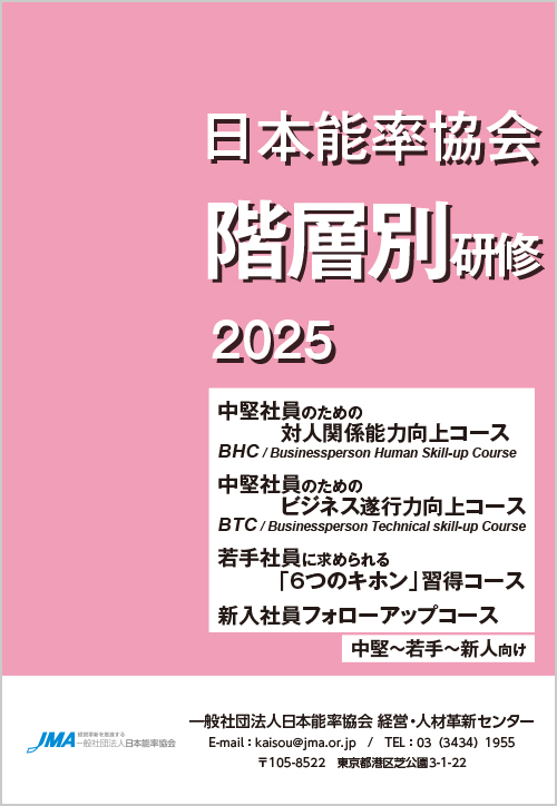 中堅社員のための対人関係能力向上コース(BHC)中堅社員のためのビジネス遂行力向上コース(BTC)若手社員に求められる「6つのキホン」習得コース新入社員フォローアップコースのダウンロードページです。