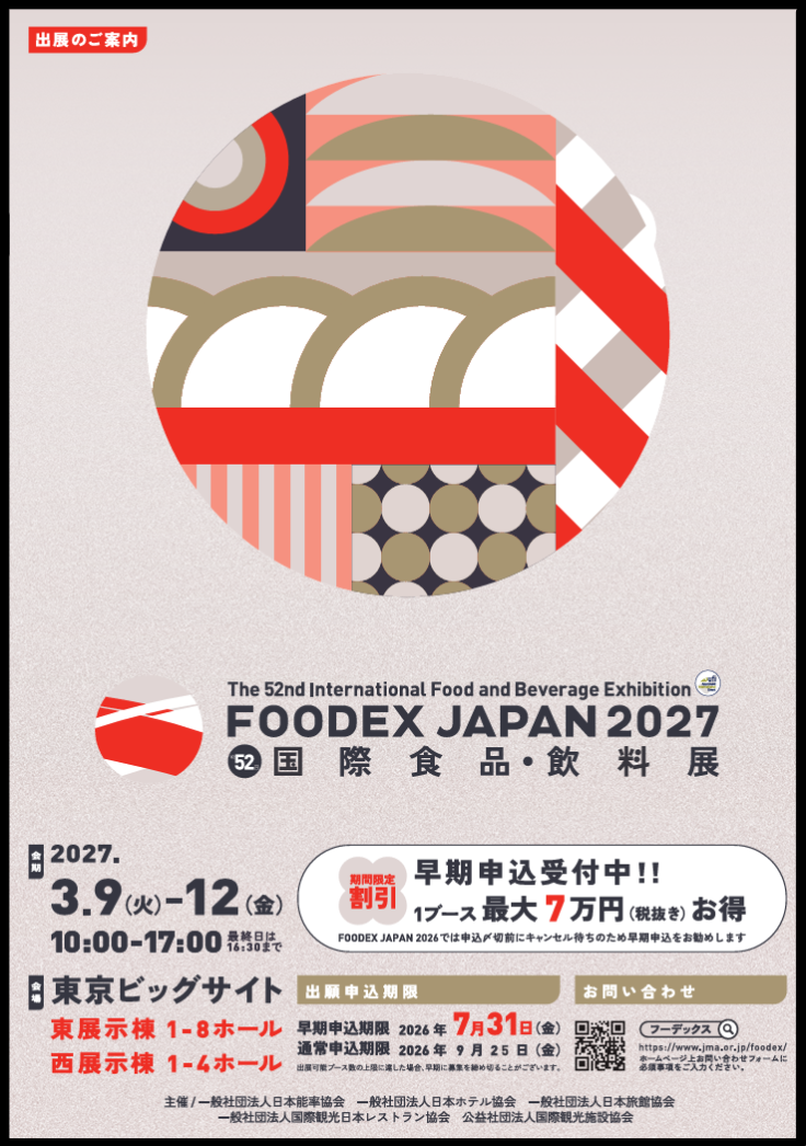 <お問合せ先>一般社団法人日本能率協会 FOODEX JAPAN 事務局〒105-8522 東京都港区芝公園3-1-22[email protected]