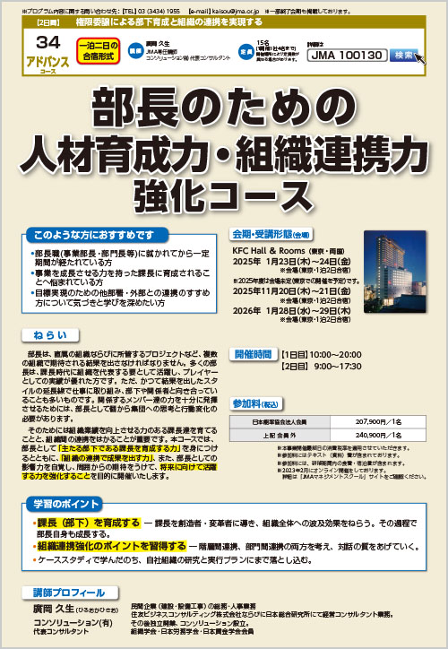 ・課長(部下)を育成する ― 課長を創造者・変革者に導き、組織全体への波及効果をねらう。その過程で部長自身も成長する。