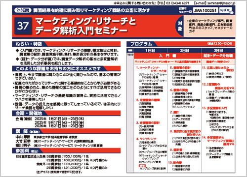 本セミナーでは、実務に役立つマーケティング・リサーチと調査データ分析の基本を総合的に修得できます。