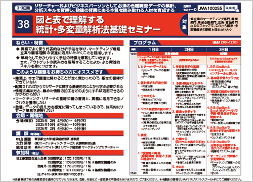 ・各企業のマーケティング部門、調査部門、商品企画部門、広告・宣伝部門などのスタッフで、これから統計・多変量解析の理解を深めたい方々