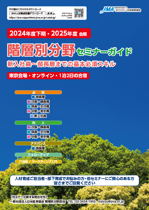 2025年度「階層別分野セミナーガイド」ダウンロードページです。毎年人気のセミナーをピックアップして掲載しております。